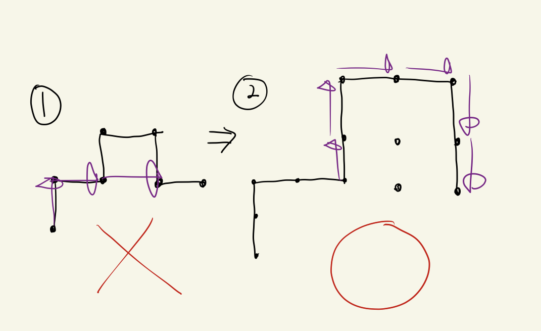 이 문제의 핵심은 아래와 같은 상황(1번)에서 어떻게 모서리만 탐색할수 있는가라고 생각한다.